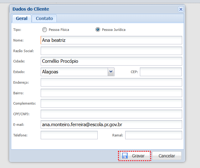 - Tipo: Escolha entre Pessoa Física ou Pessoa Jurídica.