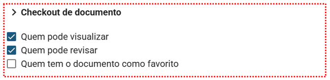 O checkout indica que o documento está sendo editado ou bloqueado para alterações. Essa notificação garante transparência no processo.