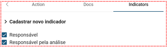 - Responsável pela análise: O responsável que irá realizar a análise do indicador.