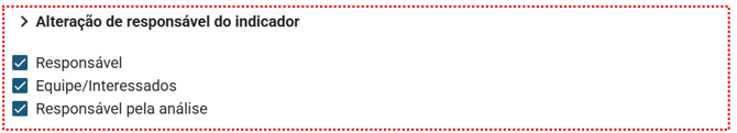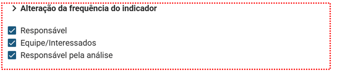 Essa configuração envia notificações quando a periodicidade de um indicador é modificada (por exemplo, de mensal para semanal).