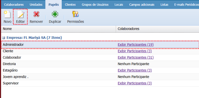 Para editar um papel, é necessário ter permissões de “Listar” e “Editar” papéis. Definido na aba Papéis > Configurações Clássicas.