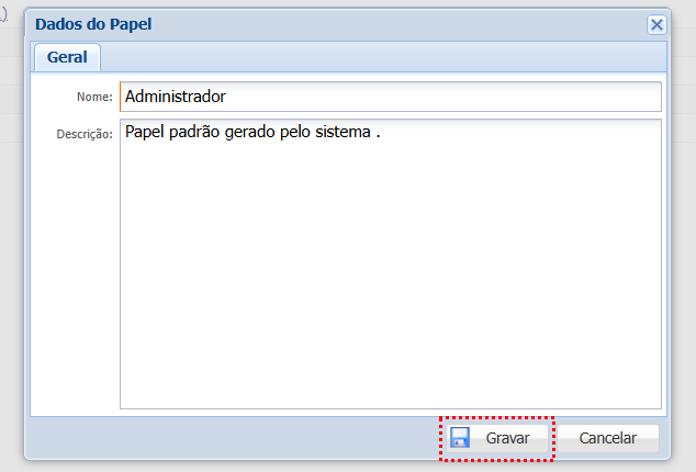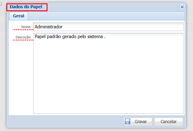 - Nome (obrigatório): Informe o nome do papel que deseja cadastrar ou editar.
