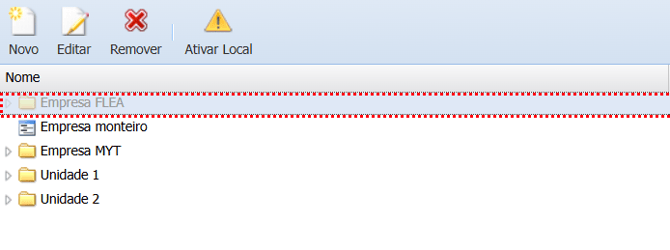 Ao inativar um local que está como matriz na hierarquia, todos os seus locais filhos serão automaticamente inativados junto com ele. Se preferir desativar apenas um local específico (filho), clique diretamente sobre o local desejado.