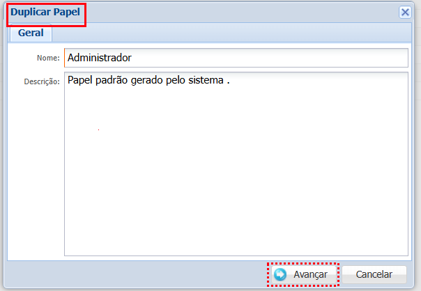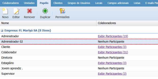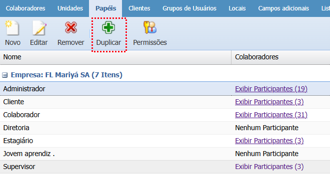 Para duplicar um papel, é necessário ter permissões de “Listar” e “Editar” papéis. Definido na aba Papéis > Configurações Clássicas.