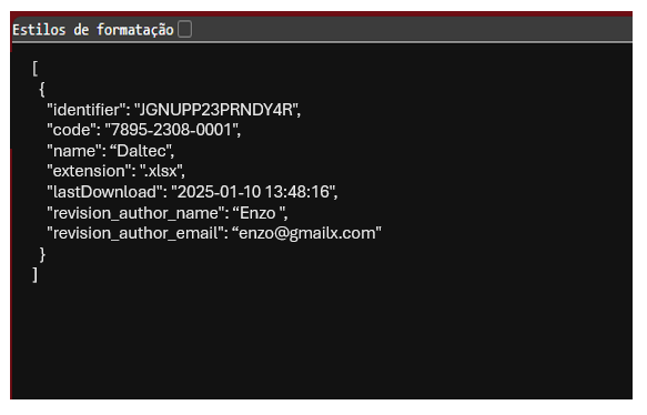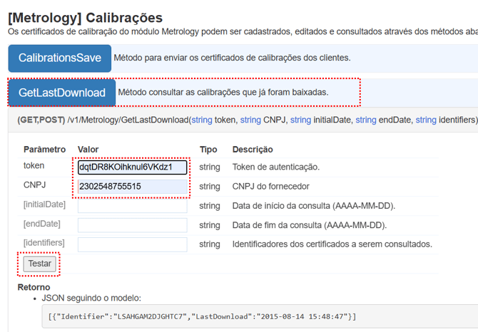 Você será direcionado para a tela com o retorno da requisição, onde poderá visualizar as informações das calibrações que já foram baixadas.