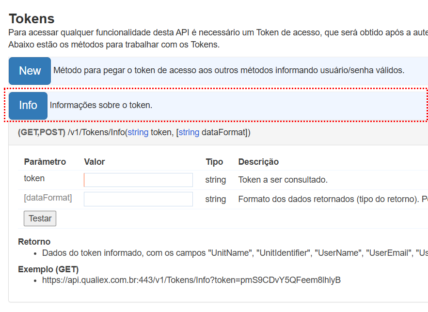 Abaixo estão os métodos para trabalhar com os Tokens.