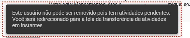 Será necessário transferir as atividades pendentes para outro colaborador antes de concluir o desligamento.