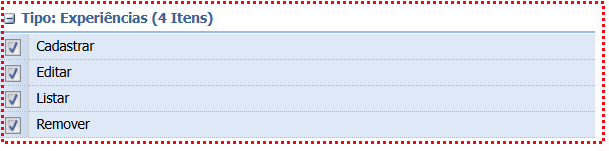 - Editar: Terá permissão de editar as experiências já cadastradas.