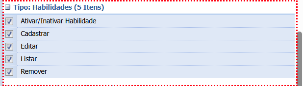 - Ativar/Inativar Habilidade: Permite ativar ou inativar uma habilidade (talvez não tenha mais necessidade para aquele cargo).