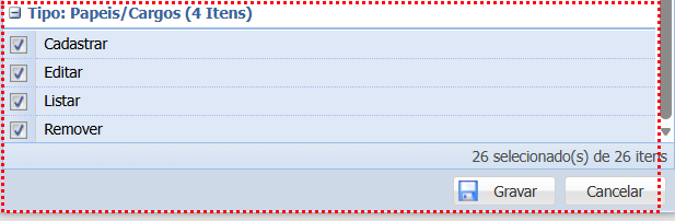 - Editar: Permitirá editar os papéis e cargos já cadastrados.