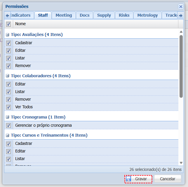 STAFF – Onde configurar os acessos do papel cadastrado?