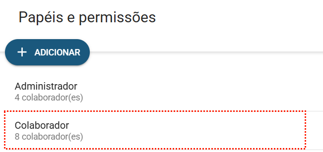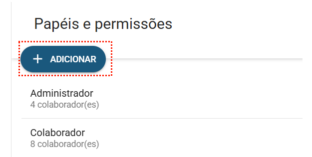 Para criar um novo papel, é necessário ter as permissões de “Listar” e “Registrar" papéis habilitadas. Definido na aba Configurações > Papel e permissões.