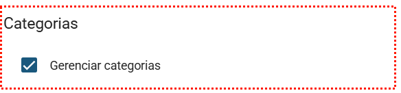 - Gerenciar categorias: Usuários com esta permissão, tem acesso a aba "Categorias" e podem: Cadastrar/Editar/Remover/Ativar ou Inativar uma categoria.