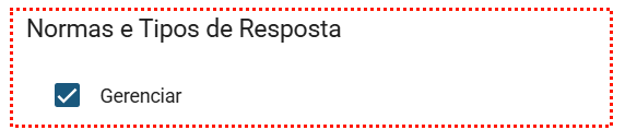- Gerenciar: Permite criar e editar normas, tipos e opções de resposta.