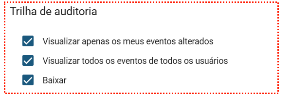 Selecione-o e acesse a aba Auditorias para atribuir as permissões que os usuários relacionados ao papel terão, referente as configurações: