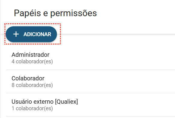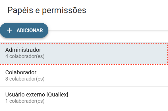 Após o cadastro, o papel será exibido na lista da aba de papéis e permissões:
