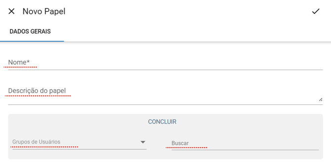- Nome*: Informe o nome do papel (campo obrigatório).