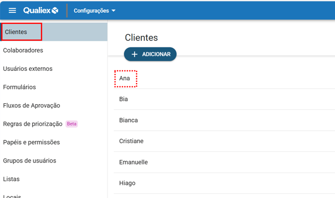 Para cadastrar um cliente é necessário ter permissão de "Registrar" e "Listar" clientes. Definido na aba Configurações > Papel e permissões