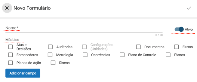 - Ativo: Utiliza para ativar ou inativar um formulário que não será mais utilizado.
