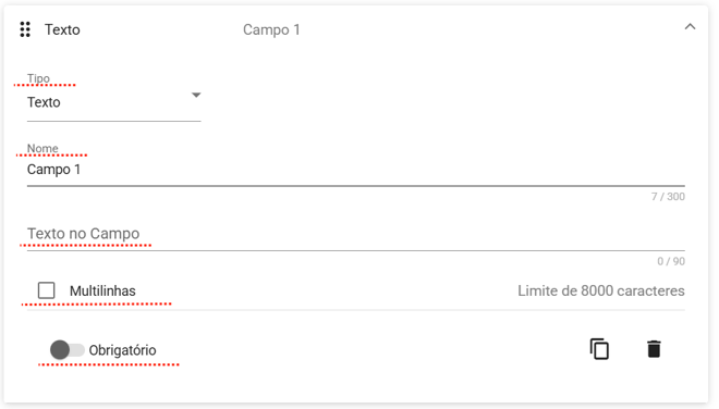 Multilinhas: Ao ativar essa opção no campo do tipo "Texto", o espaço para resposta é expandido, permitindo que o usuário escreva textos mais longos.