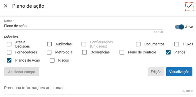- Módulo: Selecionar o módulo que o formulário será habilitado.