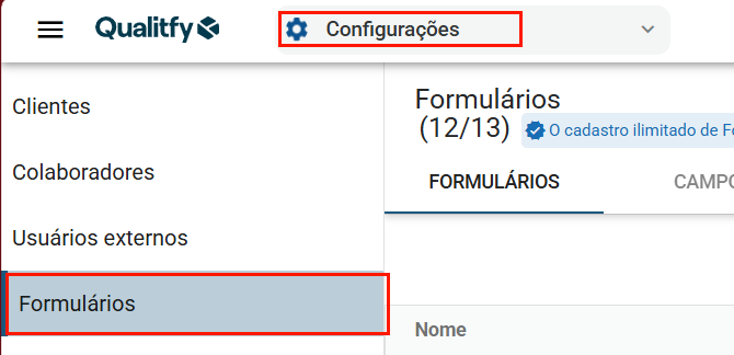 Os formulários no Qualitfy são recursos limitados. Por exemplo, se você tiver contratado dois módulos, terá direito a três formulários — sendo dois referentes aos módulos contratados e um do módulo de configurações. Caso queira cadastrar mais formulários, entre em contato conosco para realizar a contratação adicional.
