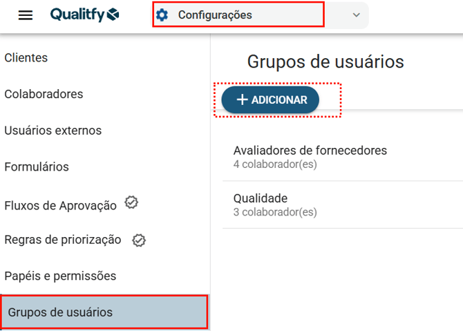 Como criar um grupo de usuários no Qualitfy?