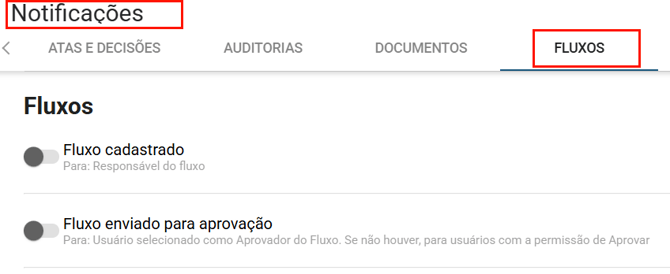 Na aba Notificações, selecione a opção Fluxos .