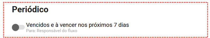 - Vencidos e à vencer nos próximos 7 dias: Toda segunda-feira, informa ao responsável do fluxo sobre os fluxos vencidos e à vencer nos próximos 7 dias.