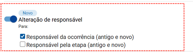 - Alteração de responsável: Informa ao responsável da ocorrência (antigo e novo responsável) e ao responsável da etapa (antigo e novo responsável) de que houve uma alteração na responsabilidade da etapa a qual estava envolvido.