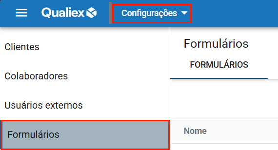 Para alterar os campos de um formulário, acesse o módulo de Configurações e, em seguida, clique na aba “Formulários”.