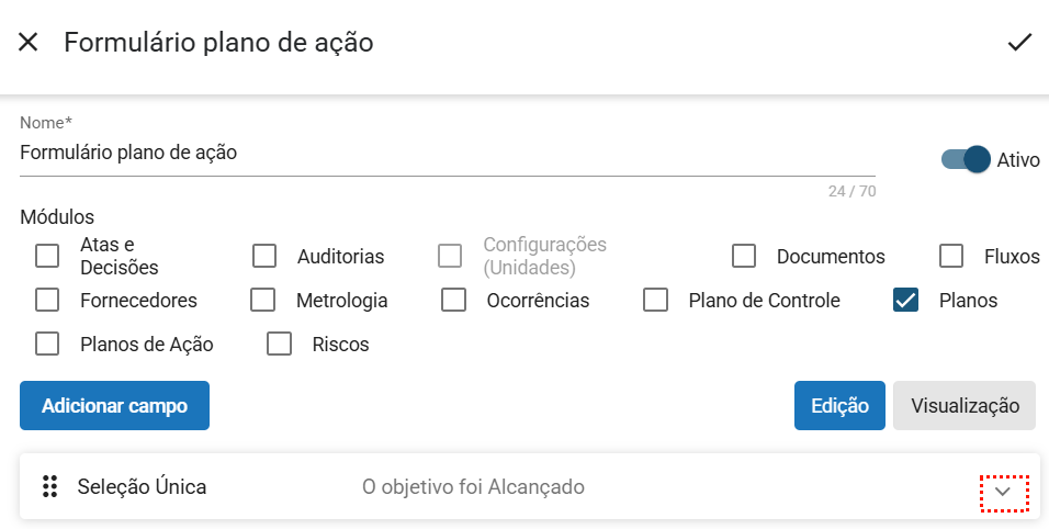 Os campos de formulário são fundamentais quando é necessário incluir informações específicas além dos campos padrão do sistema — como em cadastros de ocorrências, riscos, entre outros.