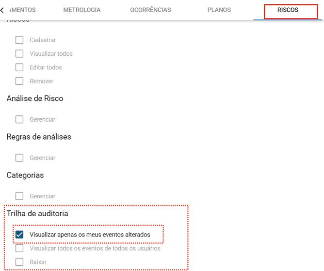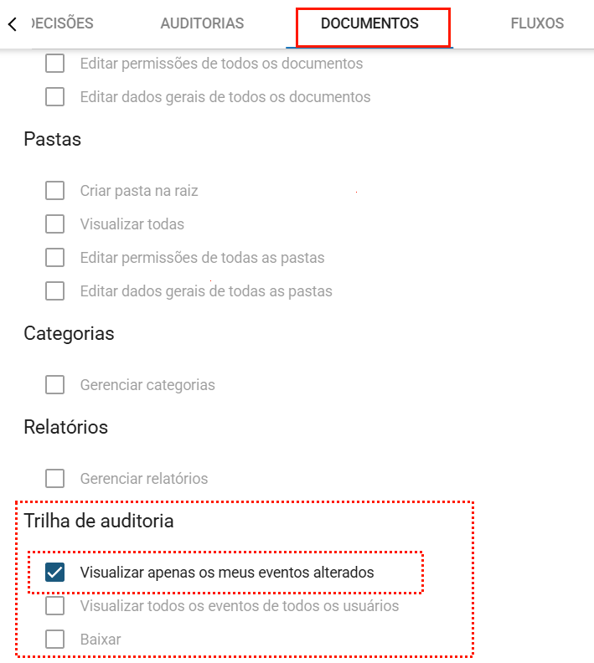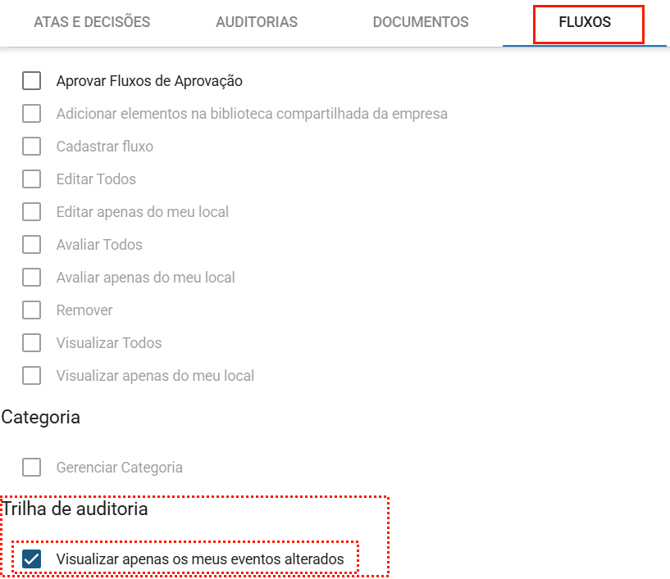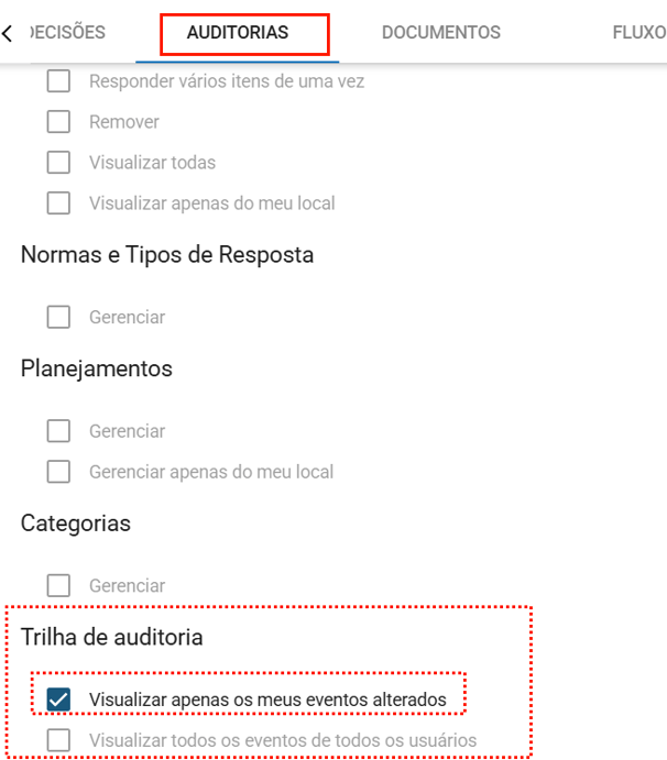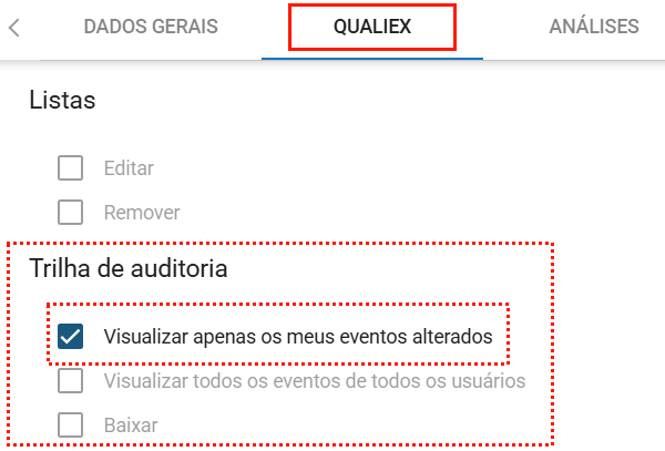 Trilha de auditoria: visualizar apenas os meus eventos alterados