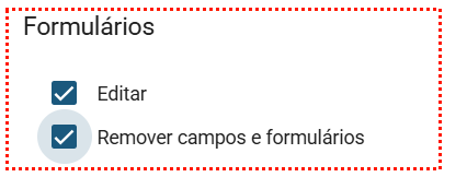 - Editar: Permite ao usuário visualizar a aba de formulários, editar e adicionar formulários e seus campos, criar cópias de formulários existentes e inativar campos de formulário.