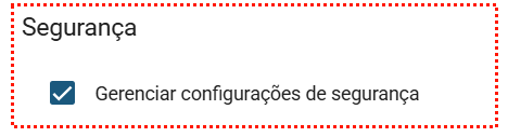 - Gerenciar configurações de segurança: Permite a visualização e a edição das informações da aba de segurança nas novas configurações.