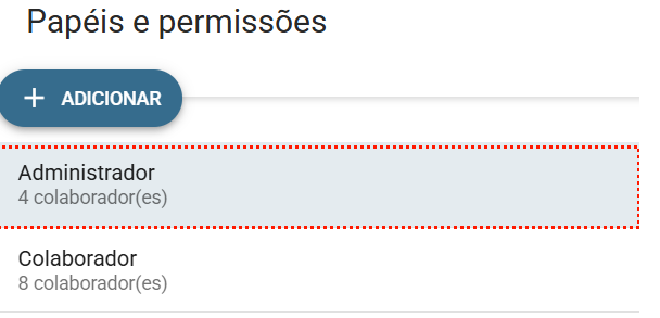 Para criar um novo papel, é necessário ter as permissões de “Listar” e “Registrar" papéis habilitadas. Definido na aba Configurações > Papel e permissões.