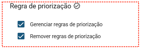 Remover regras de priorização: Essa permissão dá ao usuário a capacidade de excluir regras já existentes.