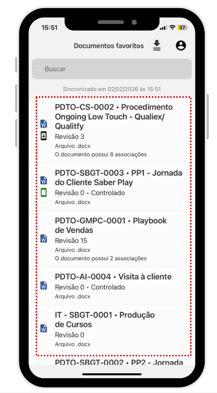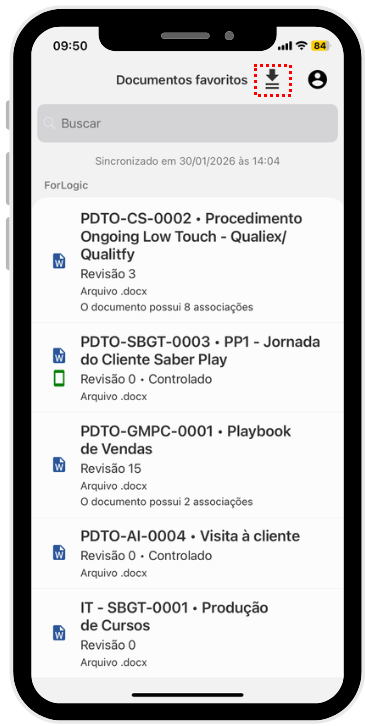 Os documentos que já possuem uma cópia no dispositivo, são indicados com