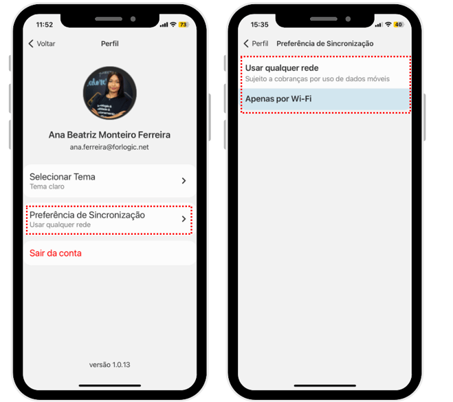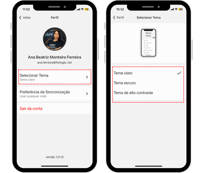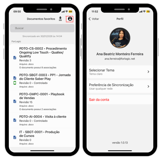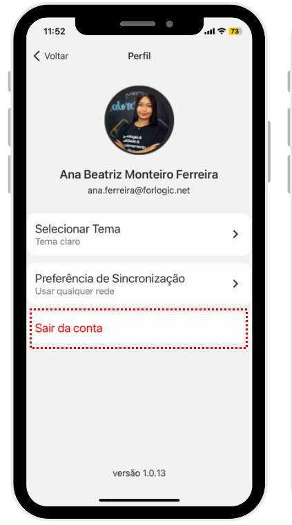 Sair da conta: Selecione para deslogar do aplicativo.