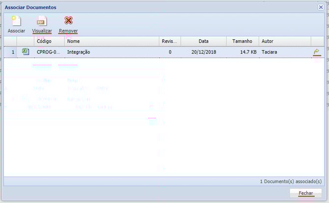 É possível associar documentos que estejam na revisão 0, desde que essa revisão já esteja aprovada no sistema.