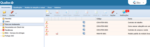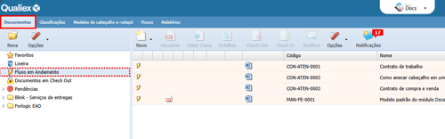 Documentos com o fluxo em andamento ficam destacados com o ícone . Clique no para iniciar o fluxo.