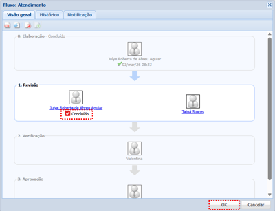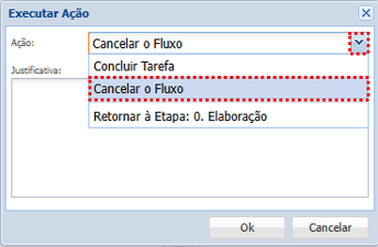 Será exibida a janela com as opções para dar andamento no fluxo. Marque a opção e clique em .