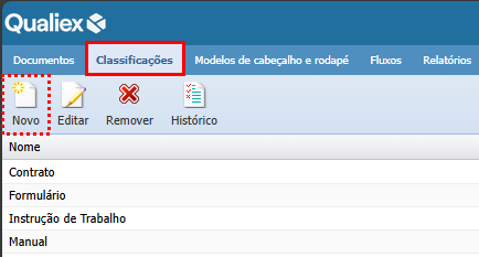 No módulo Docs vá até a aba "Classificações" e selecione a opção