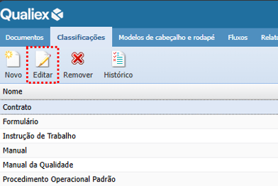 Editando uma classificação