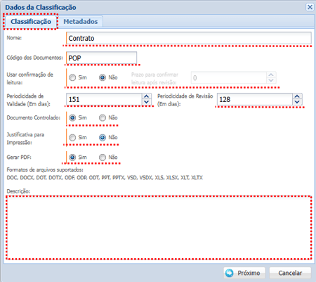 Descrição: Informe uma descrição para indicar quais documentos podem receber essa classificação.