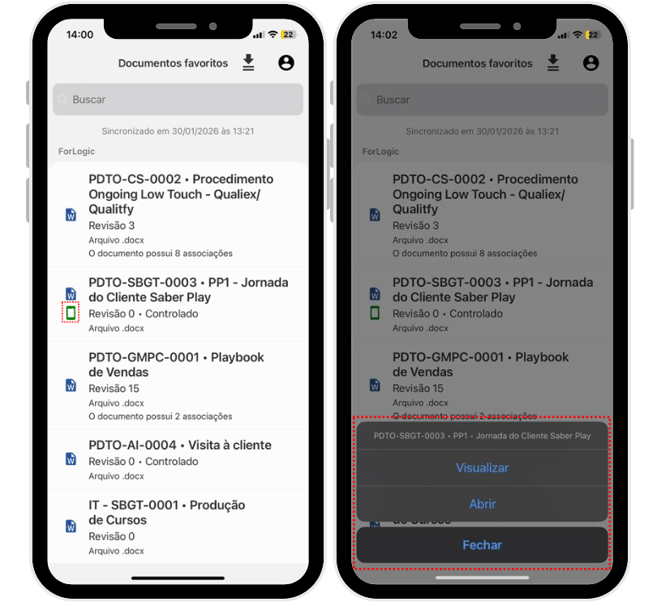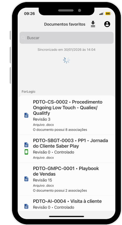 Conectado à internet, acesse o aplicativo no seu dispositivo e aguarde a sincronização dos documentos.