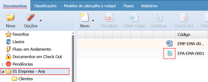 No módulo Docs, na aba Documentos, após selecionar a pasta em que deseja cadastrar a cópia , clique em