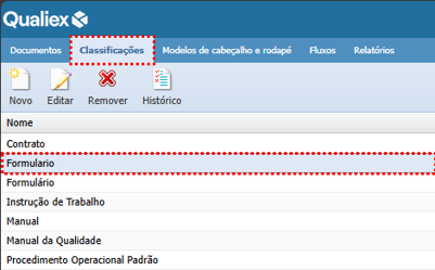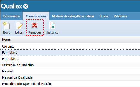 Classificações que não estão em uso podem ser removidas do sistema. Para remover uma classificação, é necessário que ela não possua nenhum documento associado.