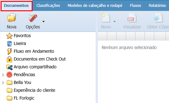 Ao acessar o módulo Docs, acesse a aba "Documentos".