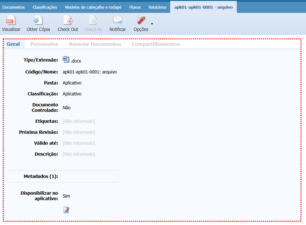 Ao clicarmos em "Detalhes" será exibida a tela com as informações detalhadas do documento.